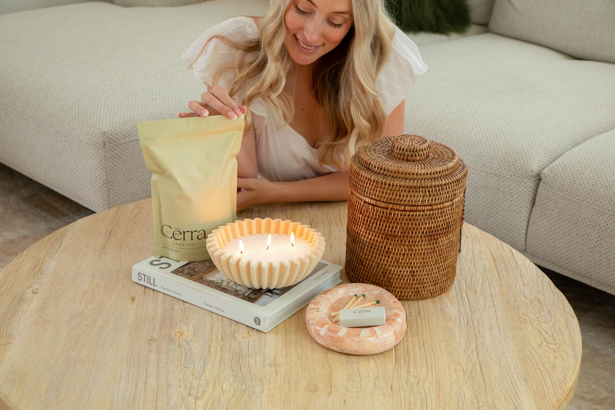 To refresh the candle, simply add more Cērra Sand Candle and repeat the process.